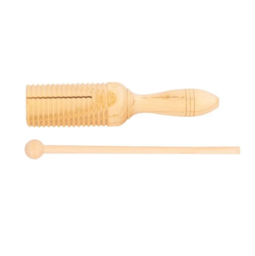 Um instrumento voltado para a musicalização infantil, têm tamanho e peso ideais para o ensino de ritmo musical, corpo em madeira e acompanha uma baqueta.